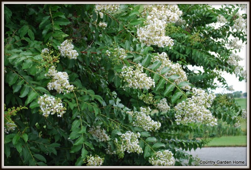 I am so pleased to see the blooms on my crepe myrtle 'Natchez' this year. They were leafed out in our abnormally warm early spring when the temperatures dropped below freezing in mid April. When all the leaves turned brown I was worried that I might see so much die back that I would lose a lot of this years bloom.