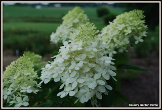 The blooms are just beginning on my Hydrangea 'Limelight'. There are two of these in the garden planted last spring and they are quickly becoming favorite plants. I purchased a third plant that is also a hydrangea paniculata but I do not remember the variety.